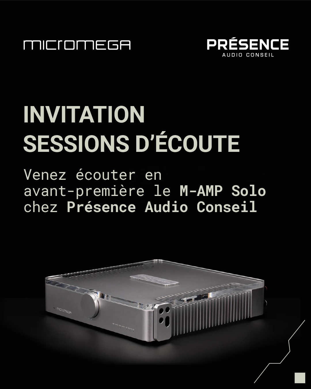 Entrée libre, mais merci de confirmer, si possible, votre présence via le lien suivant : https://calendly.com/presenceaudioconseil/decouverte-micromega-m-amp-solo